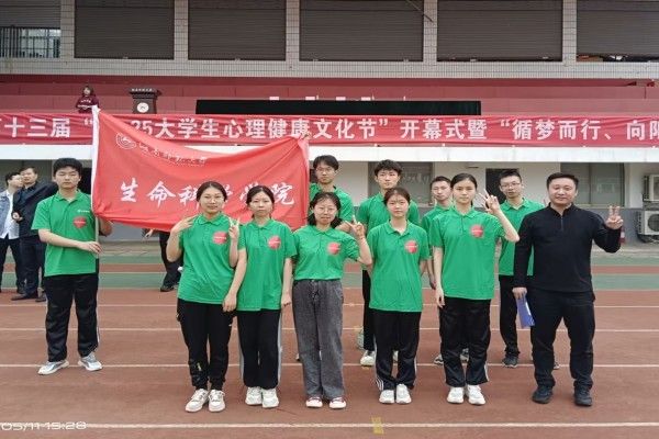 (通讯员 李亚欣 陈鑫 王乐怡)5月11日上午,生命科学学院跃上巅峰队队于北院田径场参加湖南师范大学第十三届“5.25”大学生心理健康文化节开幕式暨趣味运动会并取得团体第二名。生科院2022级辅导员周冲参与指导。生科院2022级学生吴菲娜担任巅峰队队长。