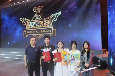 (通讯员 胡琳敏 李宇轩 何顺福)4月27日晚,湖南师范大学第二十届 “师大之星” 评选总结赛暨二十周年庆典在江湾体育馆举行。生命科学学院党委书记谢罗庚、副书记彭赛丰,学工办老师以及各年级学生代表全程观赛,与全场千余名观众一同见证这场星光璀璨的青春盛典。