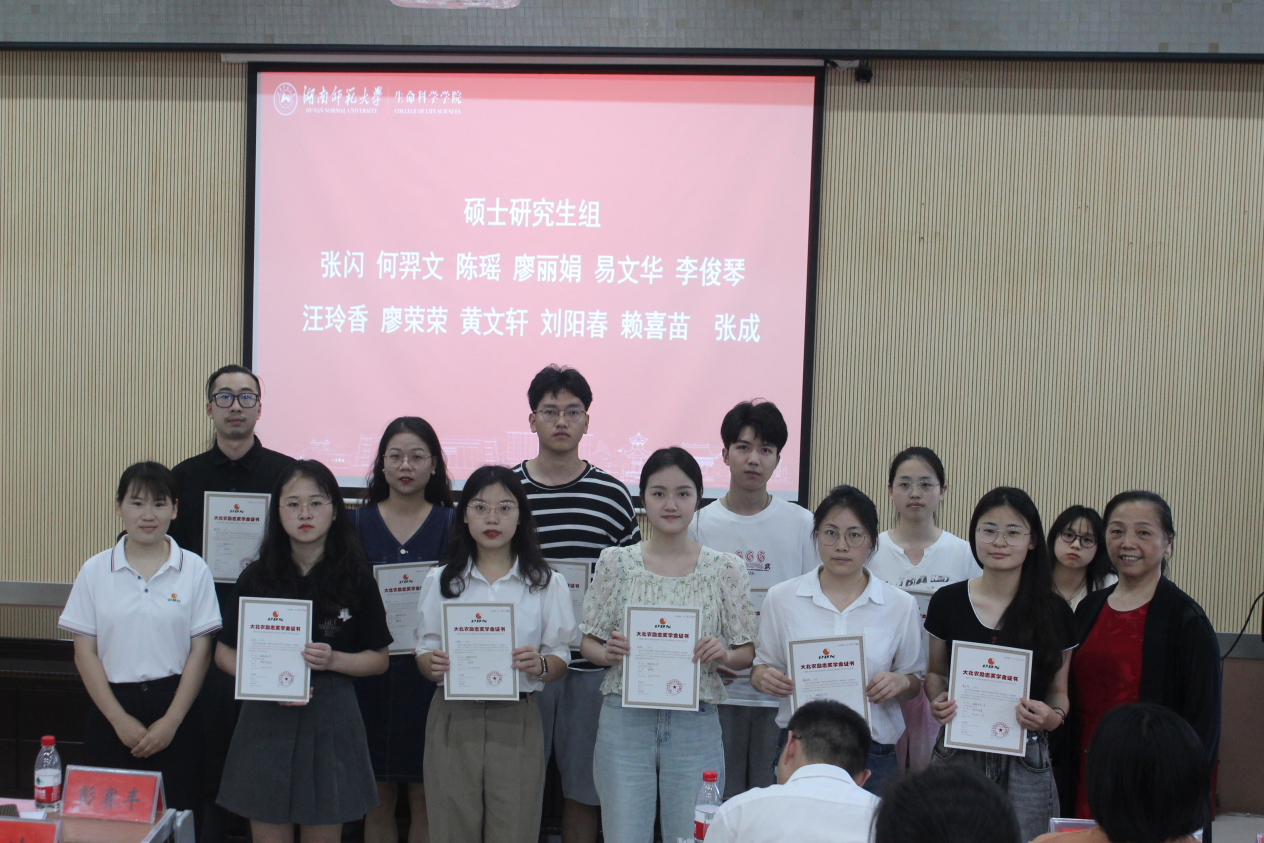 (通讯员 梁雅菁 李宇轩)6月12日下午,生命科学学院2022年度大北农励志奖学金颁奖仪式暨宣讲会于学院二号楼学术报告厅举行。学院党委副书记彭赛丰、湖南省生物研究所副所长王素娥、湖南省鱼类发育生物学国家重点实验室副主任夏立秋及学工办、研办全体老师,大北农华有水产科技集团创业人才副总监孔庆雨、大北农华有水产科技集团生物科技创业人才经理牟红梅、大北农华有水产科技集团湖南事业部创业人才经理刘静出席活动。本次活动由学院行政副院长李云龙主持。