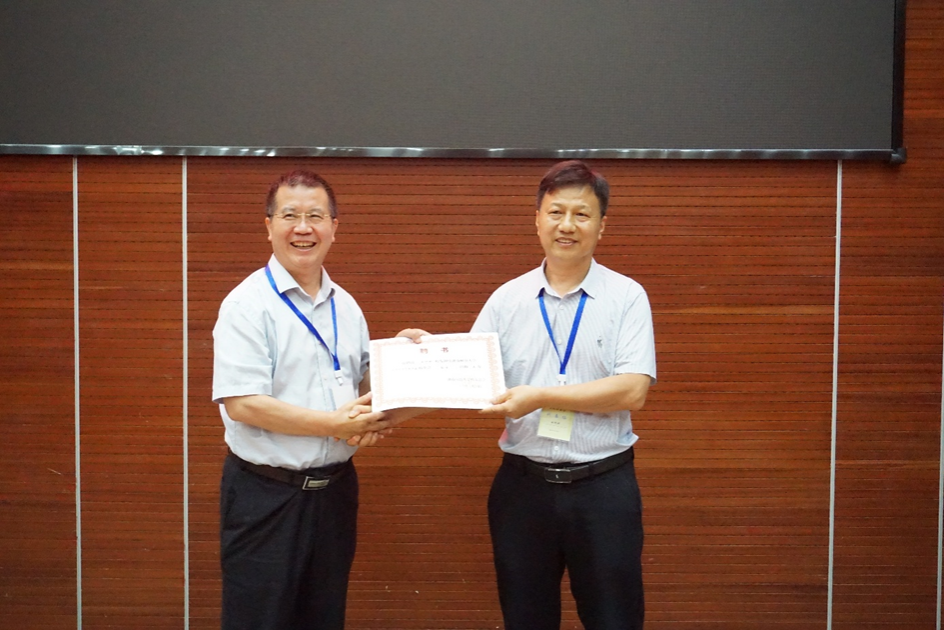 学院党委副书记彭赛丰为新一届秘书长、副秘书长颁发聘书