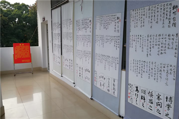 在此期间,生科院于4号楼二楼会议室、3号楼B栋207、208教室推出了“书展红心、画绘师大”师生书画作品展,收集学生作品660幅,展出学生作品140余幅、教室作品50余幅,以生科人的文化情怀为校庆献礼。